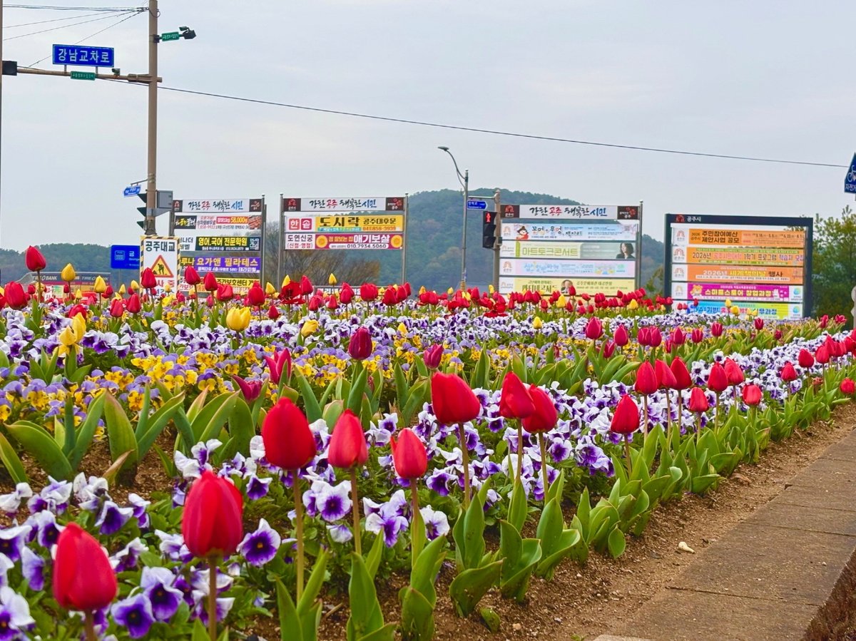 특히 색감이 풍부한 튤립과 아기자기한 무스카리를 함께 심어 시각적 조화를 높였으며 꽃이 피어나면서 해당 지역은 시민과 방문객의 발길이 이어지는 등 도심 속 작은 봄꽃 명소로 주목받고 있다.