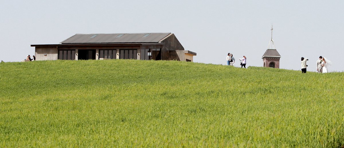 폐목장을 개조한 언덕 위 카페에서는 탁 트인 보리밭 전경을 감상할 수 있다.