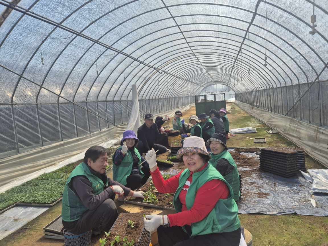 이번 작업에는 신평면 새마을지도자와 각 마을 부녀회장 등 총 42명이 참여해, 그동안 노지에 파종해 정성껏 길러온 꽃씨를 모종 포트로 옮겨 심는 작업을 함께 진행했다.