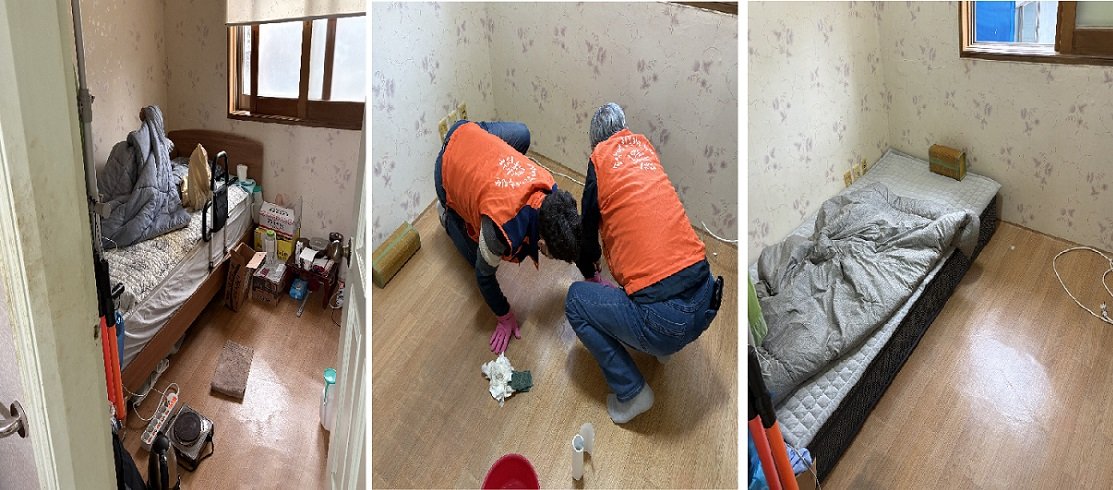 또한, 프레임 제거 후 어르신이 바닥에서 안정적으로 생활할 수 있도록 새 요와 이불 세트를 전달하며 세심한 배려를 더했다.