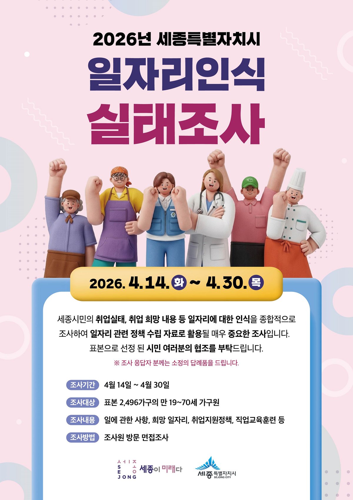4월 14일부터 세종시민 일자리인식실태조사 시작 (세종특별자치시 제공)