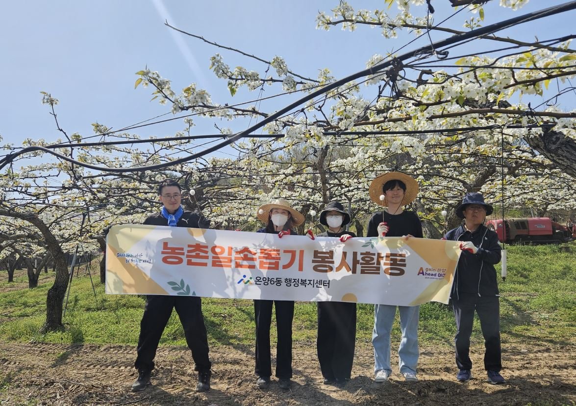 이순주 온양6동장은 “일손이 부족한 농가에 조금이나마 보탬이 될 수 있어 기쁘다”며 “앞으로도 주민들의 어려움을 현장에서 살피고 지역사회와 상생하는 현장 행정을 지속해 나가겠다”고 밝혔다.
