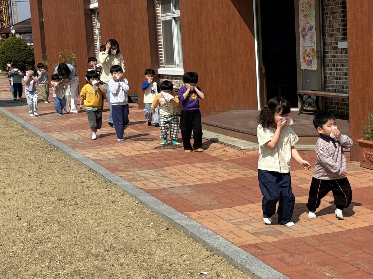 교직원의 안내에 따라 당황하지 않고 침착하게 이동하는 모습이 인상적이였으며 모든 유아가 안전하게 대피를 완료했다.