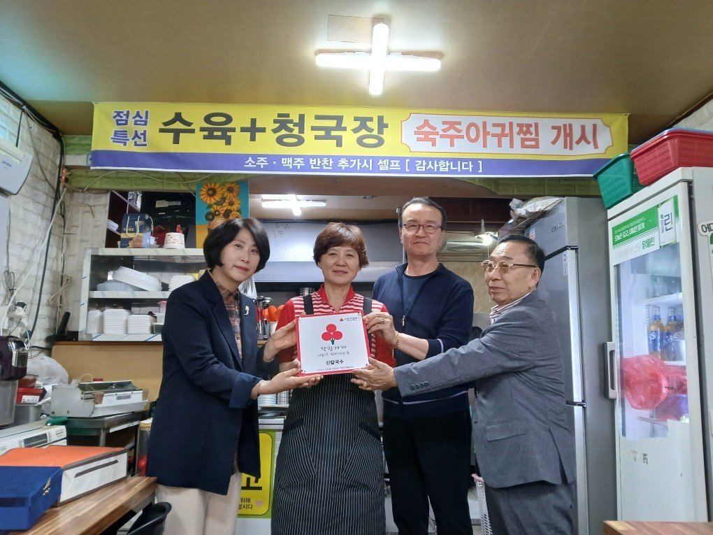 [Ytv영상스토리] 대전 중구 중촌동은 지난 17일 중촌동 지역사회보장협의체에서 관내 신칼국수 를 방문해 ‘착한가게’현판을 전달했다고 밝혔다.