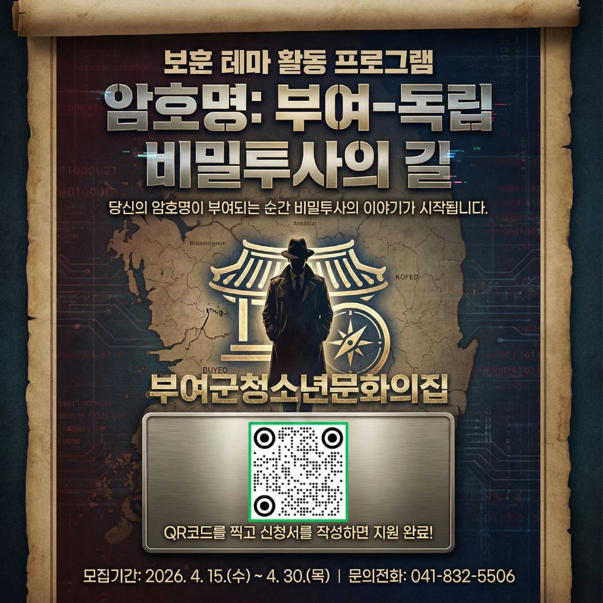 [Ytv영상스토리] 부여군시설관리공단 청소년문화의집은 국가보훈부 공모사업에 선정된 2026년 보훈 테마 활동 프로그램 암호명 부여-독립 비밀투사의 길 에 참여할 청소년을 4월 30일까지 모집한다.