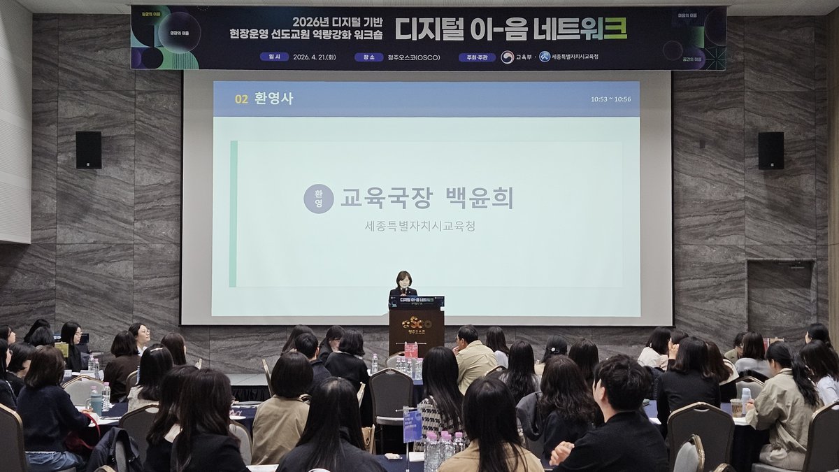 [Ytv영상스토리] 세종시교육청은 4월 21일 청주 오스코에서 전국 17개 시도교육청 유치원 선도교원 50명과 시도교육청 담당자 등 총 80여명이 참석한 가운데 ‘2026년 디지털 기반 현장 지원 선도교원 역량 강화 연수’를 개최했다.