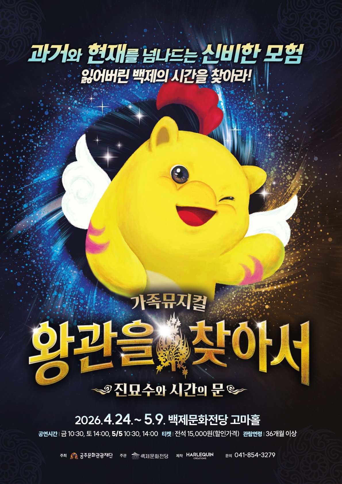 [Ytv영상스토리] 백제문화전당이 오는 4월 24일부터 5월 9일까지 어린이 뮤지컬 전문 제작사 할리퀸크리에이션즈와 손잡고 참여형 에듀테인먼트 가족극 ‘왕관을 찾아서: 진묘수와 시간의 문’을 선보인다.