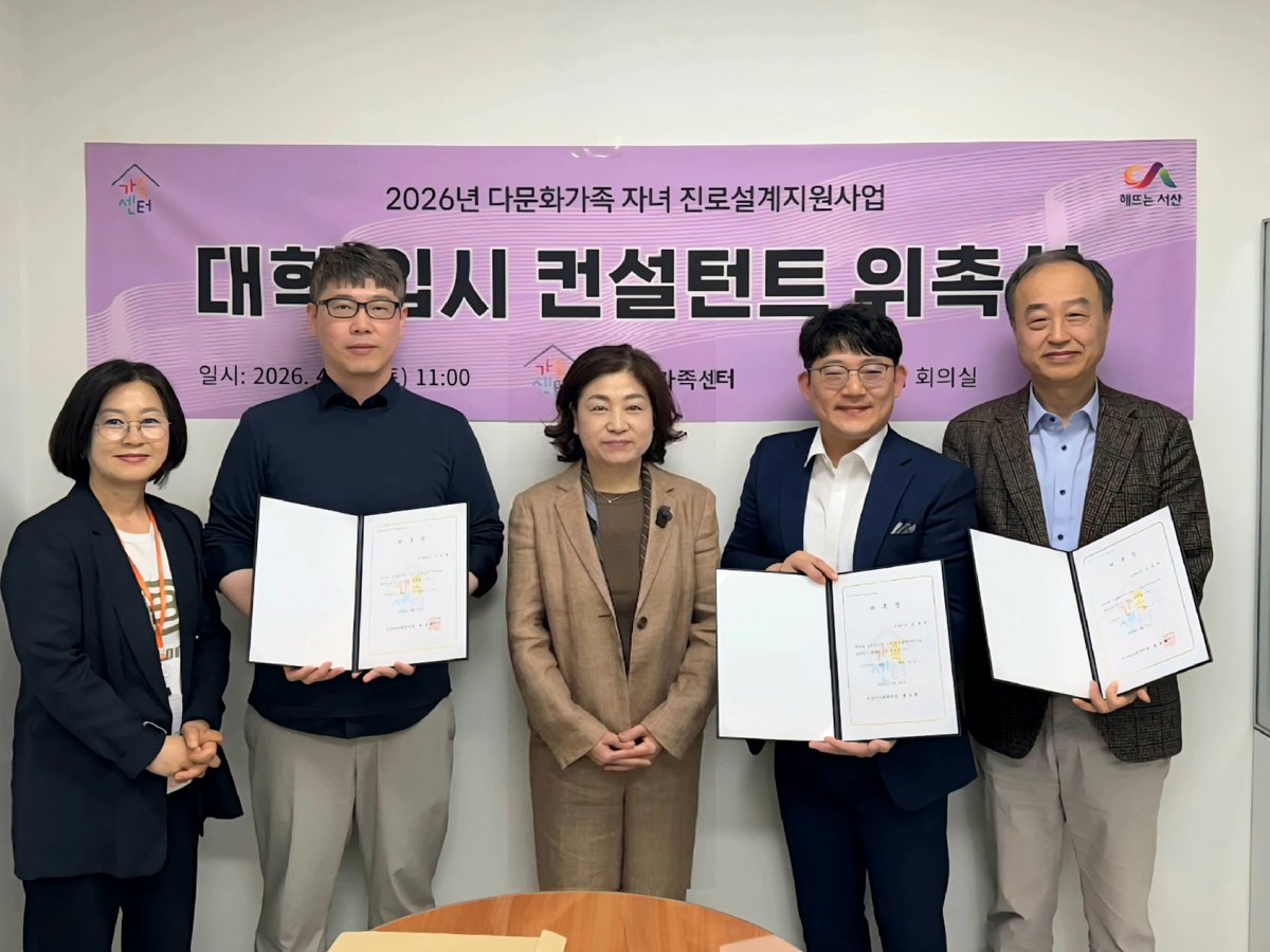 한편 서산시가족센터는 다문화 고등학생 18명에게 안정적인 학교생활 및 진로·진학 고민 해결을 위해 6월부터 12월까지 대학 입시컨설팅을 진행할 예정이며 5월 9일에는 ‘대학 입시설명회’를 개최해 다문화 학생의 진로 설계를 지원할 예정이다.