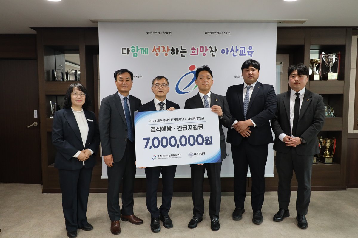 아산교육지원청 신세균 교육장은 “17년이라는 세월 동안 한결같은 마음으로 우리 아이들의 울타리가 되어주신 아산청년회에 깊은 존경과 감사를 드린다”며 “기탁해주신 소중한 후원금이 학생들의 교육적 성장을 지원하는 희망의 씨앗이 될 수 있도록 뜻깊게 사용하겠다”고 화답했다.