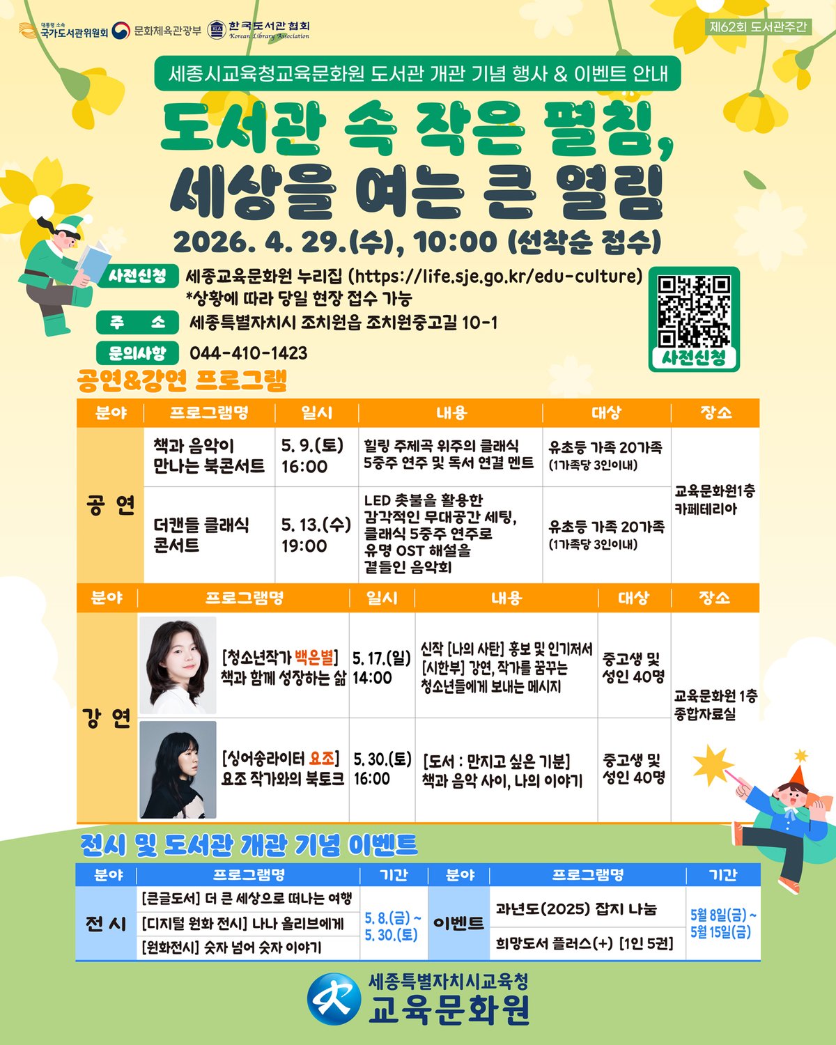 세종교육청교육문화원, 5월 8일 개원 맞이 2026년 도서관 문화행사 운영 (세종시교육청 제공)