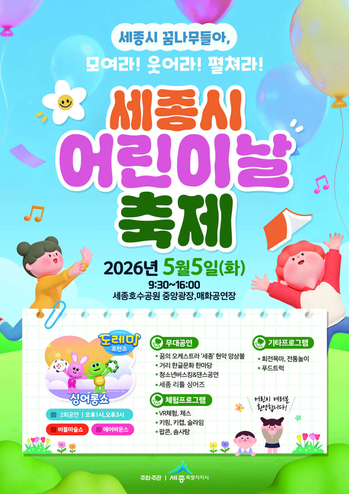 5일 세종호수공원 일원 ‘제104회 세종 어린이날 행사’ 개최 (세종특별자치시 제공)
