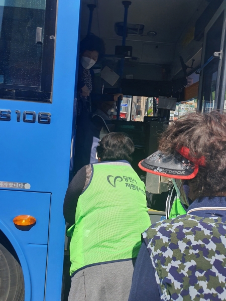 시는 매월 5일과 10일로 끝나는 당진 5일장이 서는 날, 시내버스를 이용하시는 어르신들의 안전사고 예방과 편의를 위해 거동이 불편하거나 짐을 나르는 분들의 승하차를 도움으로써 교통안전에 도움을 주고 있다.