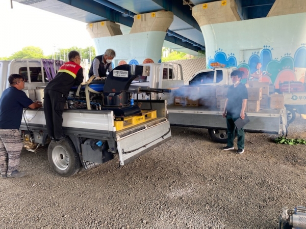 기온 상승으로 인한 모기 발생 및 감염병 발생 위험 증가에 대응해 연막소독과 친환경 연무소독을 병행 실시하고 있다.