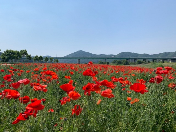 26일 공주시에 따르면, 금강신관공원과 공산성 사이에 위치한 미르섬에 유난히 가물었던 지난 겨울을 이겨내고 수레국화, 꽃양귀비, 유채꽃이 그 존재감을 드러내고 있다고 밝혔다.
