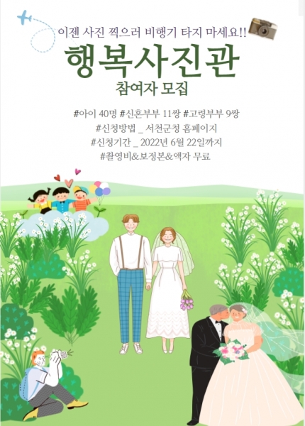 [Ytv영상스토리] 서천군이 6월 22일까지 군민들의 소중한 순간을 기념하는 ‘행복사진관’의 참여자를 모집한다고 밝혔다.