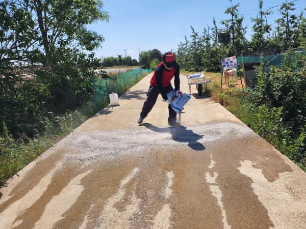 또한 이번 화상병 약제 배부와 더불어 소독제로 생석회를 농가에 2포씩 공급할 예정이며 생석회는 고온의 열 반응과 강알칼리작용으로 병원균을 죽이는 소독 효과가 있어 농가에서는 과원 출입구 주변에 뿌리면 된다.