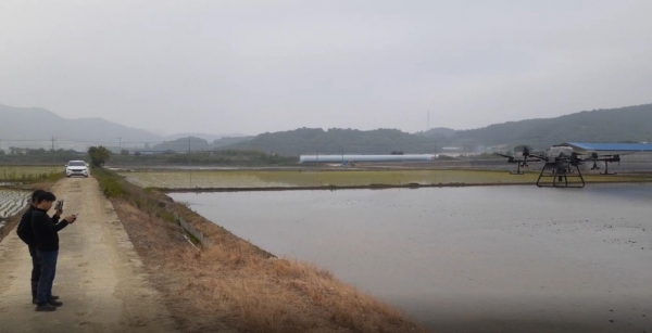 청양군, 드론이용 벼 직파재배로 스마트 농업에 앞장서