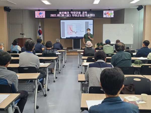 [Ytv영상스토리] 부여군농업기술센터는 지난 30일 혁신농업교육관에서 블루베리 재배 농업인 30여명이 참석한 가운데 ‘부여군블루베리연구회’ 역량강화 교육을 실시했다.