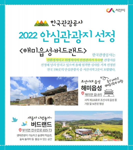 서산시, 2022 안심 관광지 ‘해미읍성’ ‘버드랜드’ 선정