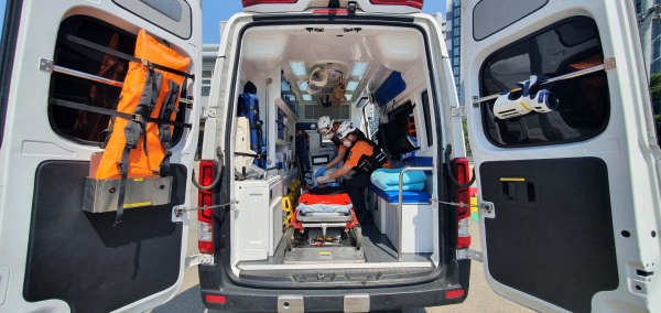 119폭염구급대는 얼음조끼, 생리 식염수 등 폭염장비 9종을 구급차에 비치해 온열질환자 발생시 신속한 응급처치가 가능하다.
