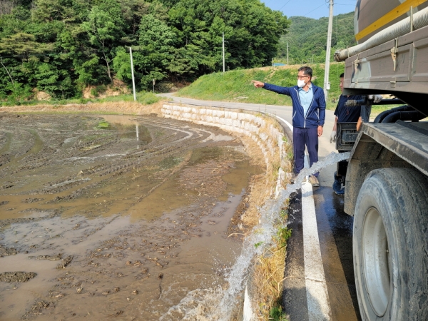 [Ytv영상스토리] 예산군은 극심한 가뭄으로 모내기를 실시하지 못한 대술면 화산리 농가에 급수차를 투입해 긴급 농업용수 공급을 시작했다고 7일 밝혔다.