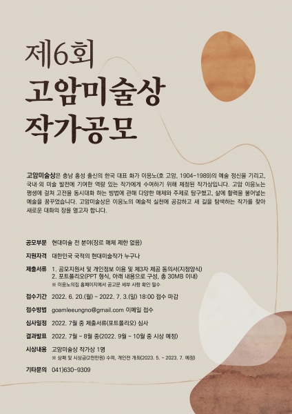 홍성군 고암이응노생가기념관, 제6회 고암미술상 작가 공모