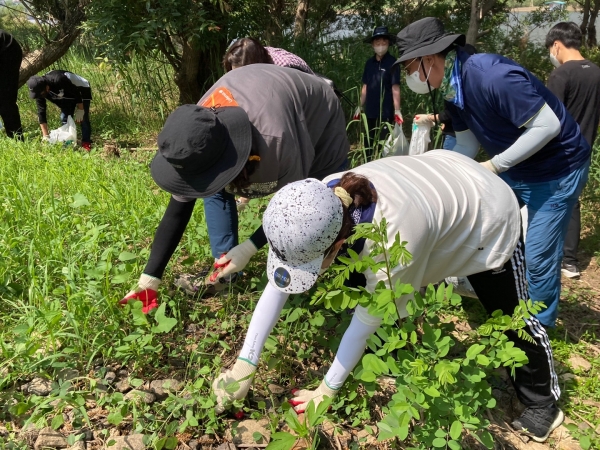 이번 활동은 자생력이 강한 외래 어종인 가시박이 씨앗을 맺기 전인 6∼9월 사이에 어린 순을 제거해 순환고리를 차단하기 위해 진행됐으며 자원봉사센터 3팀의 가족봉사단 60명과 지속가능발전협의회 활동가 20명이 참여한 가운데 생태계 불청객인 가시박 제거에 힘을 쏟았다.