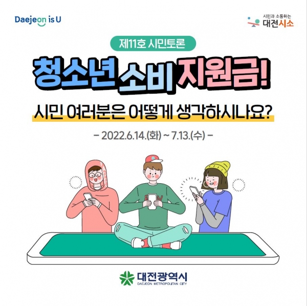 [Ytv영상스토리] 대전시는 정책제안 플랫폼 ‘대전시소’에서 ‘청소년 소비 지원금, 시민여러분의 생각은 어떠신가요?’라는 주제로 6월 14일부터 한달 간 시민들의 다양한 의견을 수렴한다.