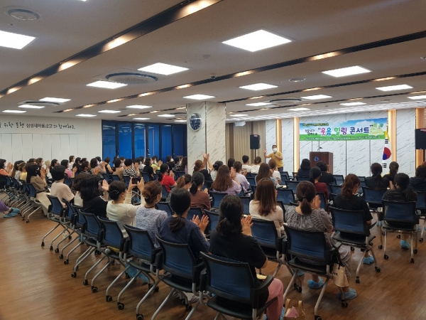 관내 어린이집 이용 아동 학부모 150여명이 참석한 이번 교육은 ‘부모님들과 함께하는 웃음 힐링 콘서트’라는 주제로 맹재덕 강사가 교육을 진행했다.