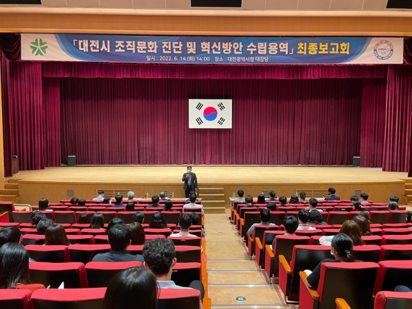 [Ytv영상스토리] 대전시는 14일 시청 대강당에서 조직문화 혁신기획단 및 관심 있는 직원 100여명이 참석한 가운데‘조직문화 진단 및 혁신방안 수립 용역’최종보고회를 개최했다.