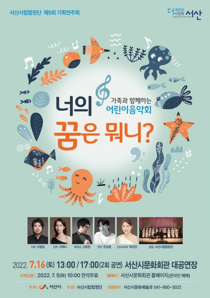 연주회는 전석 무료며 7월 5일 오전 10시부터 서산시문화회관 홈페이지에서 선착순 예약할 수 있다.
