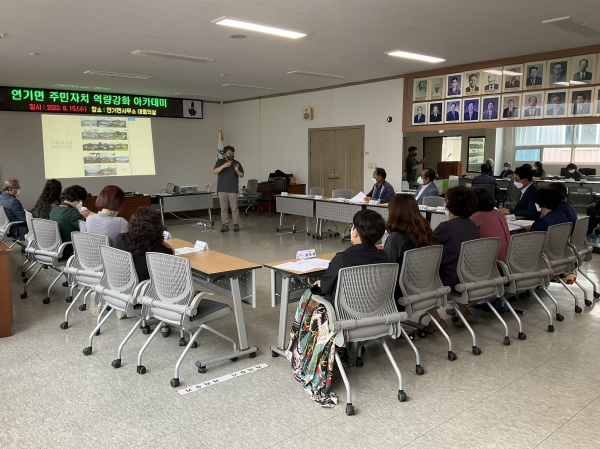 이번 역량강화 아카데미는 연기면 주민자치회 출범 2주년을 맞이해 풀뿌리 민주주의 발자취가 될 연기면 주민자치회 활동을 기록하고 활용 방안을 모색하기 위해 개최됐다.
