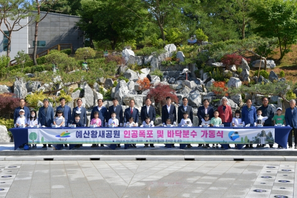예산군, 예산황새공원 인공폭포 및 바닥분수 본격 가동