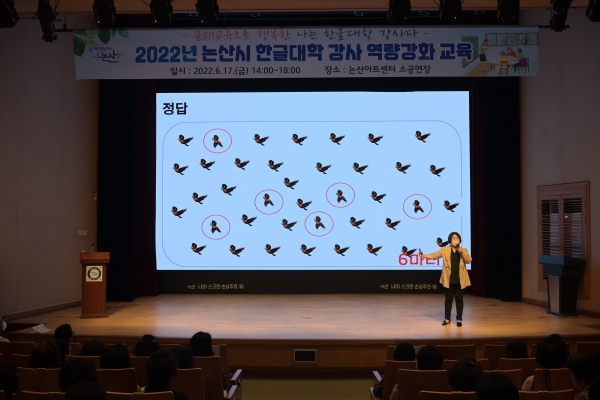 [Ytv영상스토리] 논산시는 17일 논산아트센터 소공연장에서 131명의 한글대학 강사를 대상으로 ‘2022년 한글대학 강사 역량강화 교육’을 실시했다.