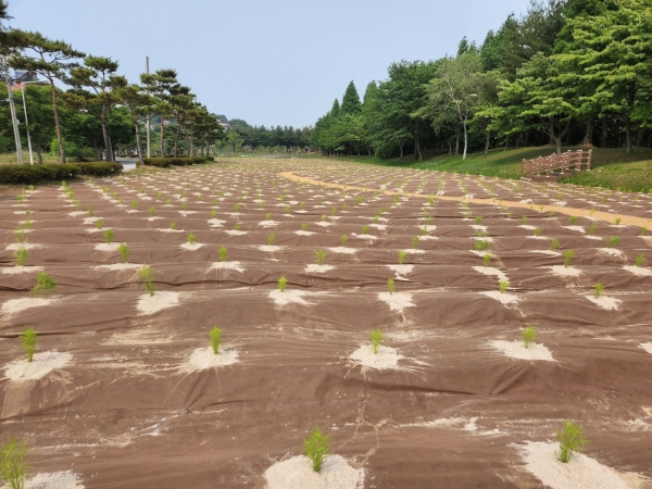 군은 3800㎡ 의 유휴부지에 3800만원의 예산을 투입해 댑싸리 모종 4000본을 식재하고 203m의 야자매트 산책로를 조성했다.