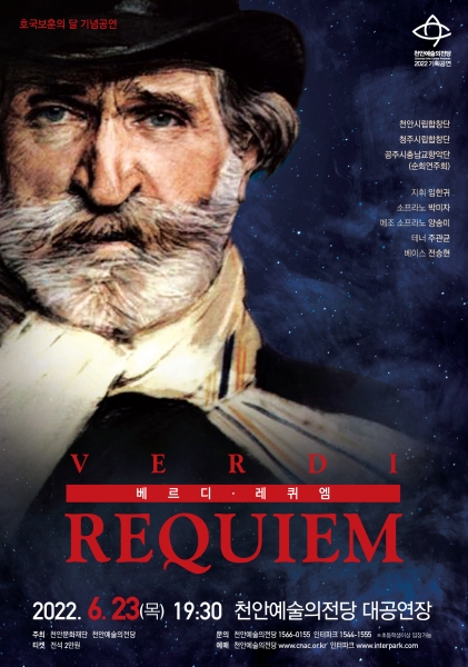 천안시립합창단 임한귀의 지휘를 통해 전쟁의 아픔과 이를 위해 희생한 분들에 대한 애도와 희망을 바라는 마음에서 이탈리아 대표 작곡가인 쥬세페 베르디의 레파토리 중 가장 대작으로 꼽히는 레퀴엠을 선사한다.