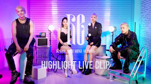 카드의 소속사 DSP미디어는 오늘 0시 공식 SNS 채널을 통해 오는 22일 발매되는 미니 5집 ‘Re:’ 음원 하이라이트 라이브 클립 영상을 공개했다 공개된 영상에서 카드는 타이틀곡 ‘Ring The Alarm’을 포함해 ‘Brack Down’, ‘Whip’, ‘Good Love’까지 모든 곡을 라이브로 완벽하게 소화하며 믿고 듣는 ‘신용KARD’의 면모를 발산했다.