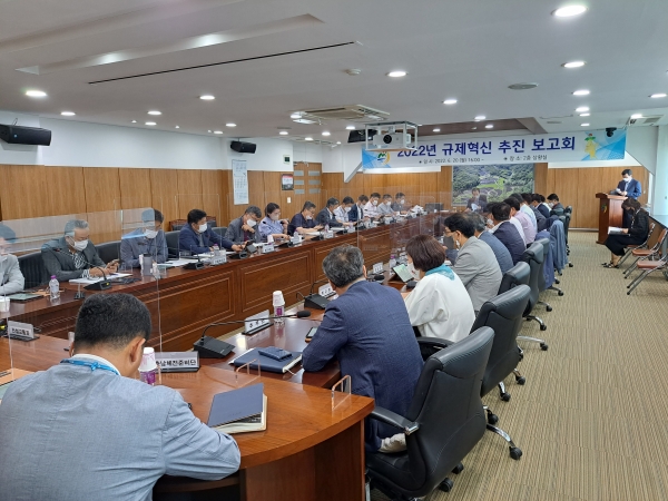이날 보고회는 이종규 부군수 주재로 전 부서에서 참여해 지역경제 활성화 및 주민불편 해소를 위한 규제혁신 과제 33건과 규제 자체 해결 사례 9건을 보고하고 향후 규제혁신 추진 방향을 논의했다.