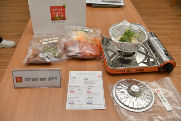 군 관계자는 “예가정성 브랜드 인지도 향상 및 농특산물 판매 확대를 도모하기 위해 밀키트를 개발했다”며 “앞으로도 더 많은 사람들에게 우리 지역의 우수한 농특산물을 알리고 관내 농업인 소득향상에 도움을 줄 수 있도록 노력하겠다”고 밝혔다.