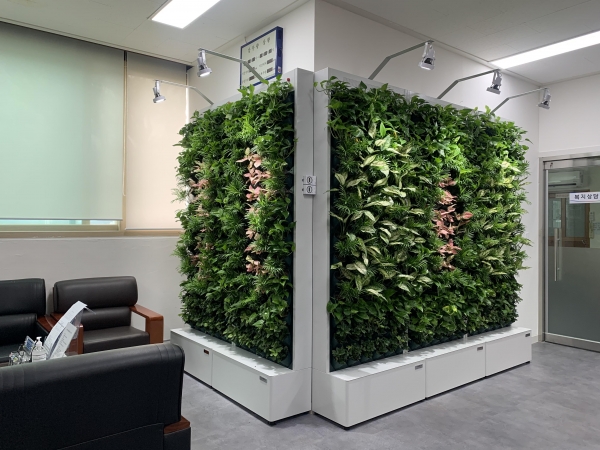 근로자의 근로환경을 개선하고 미세먼지 저감, 쾌적한 환경 제공 등을 위해 조성된 스마트가든은 실내공간에 적합한 식물 소재와 식물 자동화 관리 기술을 도입해 치유휴식관상효과를 극대화하는 새로운 형태의 정원이다.