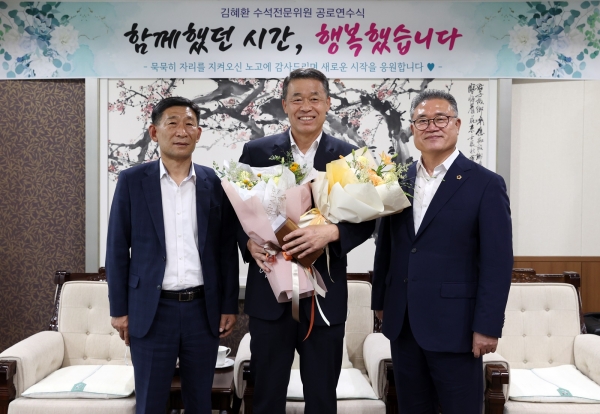 이날 연수식은 공로연수를 맞이한 김혜환 복지환경위원회 수석전문위원을 비롯해 김명선 의장, 김찬배 사무처장 및 후배 공무원 50여명이 자리를 함께했다.