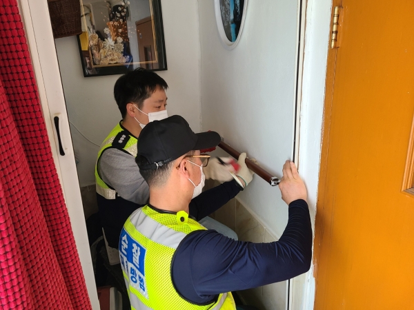 자원봉사로 안전손잡이 설치를 하고 있는 자율방범대 대원들은 어르신들이 기뻐하시는 모습을 볼 때 힘듦보다 보람이 더욱 크다며 오히려 더 감사하다고 말했다.