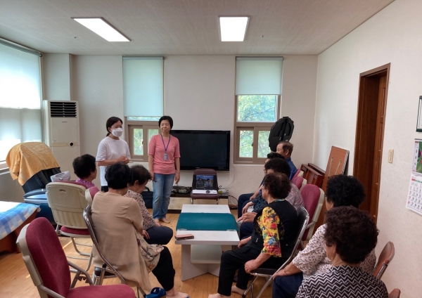 22일 오전 불당동 경로당에서 많은 어르신이 참석한 가운데 올해 첫 교육을 운영했다.