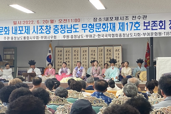 군 관계자는 “내포제시조는 부여의 소중한 무형문화유산 중 하나”며 “전통 소리 문화를 이어가기 위해 노력하는 내포제시조 보존회에 대한 지속적인 관심과 전승지원 통해 우리 소리의 우수성을 알리겠다”고 전했다.