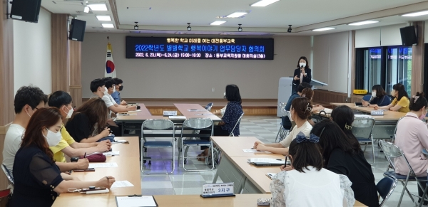 [Ytv영상스토리] 대전광역시동부교육지원청은 2022년 6월 23일과 6월 24일에 관내 초등학교를 대상으로 특색있는 교육활동 지원 사업 ‘별별학교 행복이야기’ 업무 담당자 협의회를 개최했다고 밝혔다.