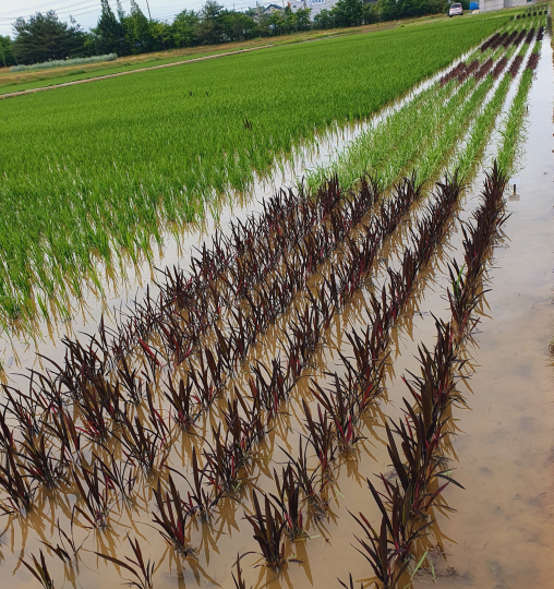 최근 개발된 충남 19호는 자갈색 잎에 새끼치는 얼자들은 분홍색의 분얼과 줄무늬를 가지고 있어 논에 단풍이 든 느낌을 줄 정도로 색감이 뛰어나다.