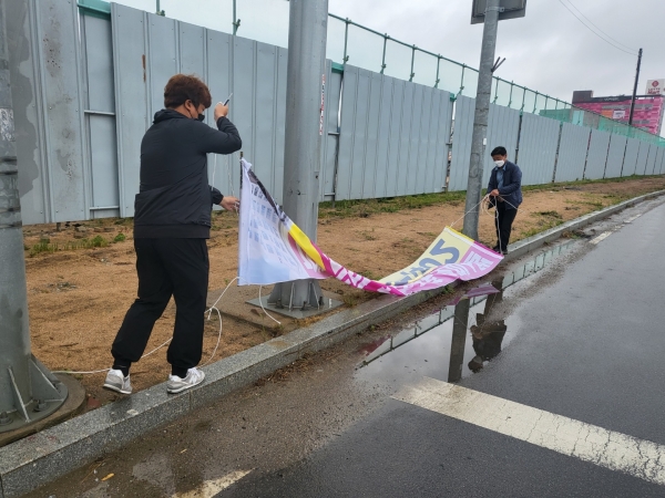 이번 합동 점검은 인구밀집 지역과 차량, 보행자의 통행량이 빈번한 지역을 중심으로 고층 건물의 옥상이나 벽면에 설치된 노후 간판과 노상 불법 간판, 현수막 지정 게시대, 입간판 등 풍수해 대비 집중적으로 관리가 필요한 것을 대상으로 실시하면서 입주·분양홍보 불법현수막 정비도 병행해 쾌적한 가로 미관을 조성해 나갈 예정이다.