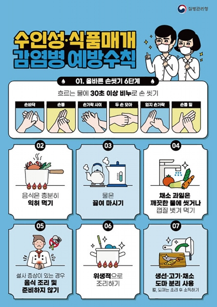 또한, 감염 확산 방지를 위해 설사 증상이 있는 경우 음식 조리 및 준비하지 않기 위생적으로 조리하기 생선·고기·채소 도마 분리 사용 등도 주의할 것을 당부했다.