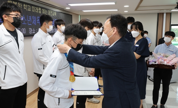 [Ytv영상스토리] 대전광역시교육청은 6월 28일 대전동부교육지원청 대회의실에서 지난 5월 28일부터 5월 31일까지 4일간, 경상북도 일원에서 열린 제51회 전국소년체육대회에서 발군의 실력을 발휘한 금메달 입상선수 14명, 최우수선수 선정 학생 1명 및 다관왕 1명과 우수학교 선정 학교장 및 운동부 지도교사 14명을 초청해 포상금 수여식을 진행했다고 밝혔다.