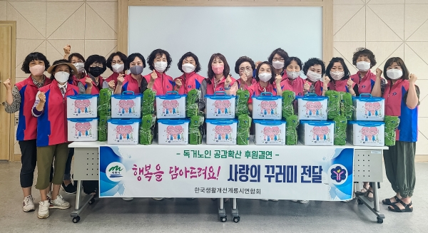 이날 생활개선회원은 영양간식, 밑반찬, 건강식품 등으로 구성된 꾸러미를 만들어 어르신 댁으로 직접 찾아가 꾸러미를 전달하고 말벗을 해드리며 작은 위안을 드렸다.